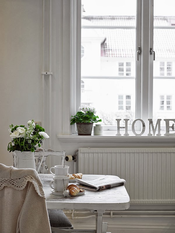 No se a vosotros, pero a mí cada día me gustan más las letras en decoración. Letras grandes para colocar en algún lugar estratégico de casa, sueltas o agrupadas. Y en el apartamento de hoy las letras son las protagonistas. Situado en un edificio construido en Estocolmo a principios de 1920, el estilo elegido para su reforma y decoración es moderno, con un toque chic bohemio y algo de romanticismo. Los colores principales son el blanco y beige con algunos elementos en café y gris. Este esquema de color hace que la luz entre en el espacio y parezca más amplio y aireado.