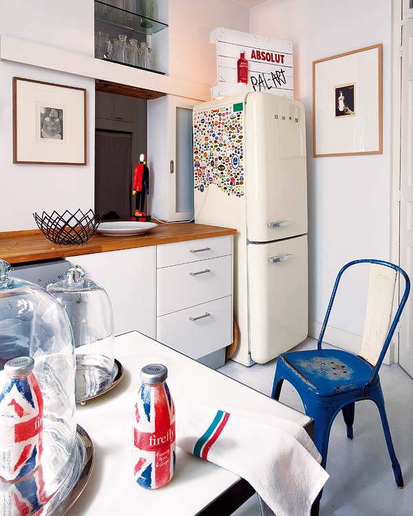 Hoy en el espacio [Interior] os muestro un apartamento lleno de eclecticismo en el castizo barrio de Malasaña de Madrid. Una reforma completa de un espacio en el que se creó un espacio completamente diáfano, sin tabiques. El color blanco de base se complementa y contrasta con el color de muebles y piezas singulares, y las mezclas de estilos dan un toque desenfadado y original a toda la vivienda.