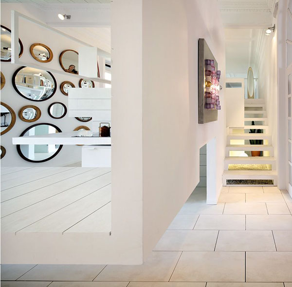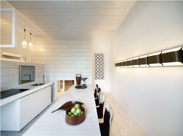 El fondo cerámico, blanco, limpio y aséptico, resalta de forma especial el mobiliario y los complentos usados para la decoración, en su mayoría diseños de los años 50, en diferentes tipos de madera. Sin duda, «Ceramic House« es un ático espectacular, en donde no sólo se nos muestra una decoración elegante, sencilla y moderna, sino también una manera diferente de entender el espacio, a través de un sugerente recorrido por sus volúmenes.