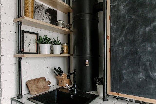 [Deco] Mini ático de arquitecto con cocina en blanco y negro industrial