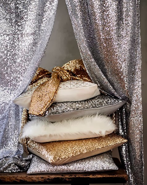y otra más moderna, con la elegancia de los brillos dorados, plateados y en tonos blancos y grises: