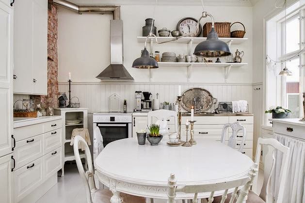 La iluminación de la vivienda entra por los ventanales de todas las estancias y el blanco de mobiliario y paramentos hace que se duplique la sensación lumínica del interior. En la sala de estar al encontrase a dos alturas, el techo se duplica y la sensación de amplitud es mayor. Las paredes «desnudas» se utilizan como un soporte para armarios individuales y objetos decorativos. Dado que el mobiliario se distribuye a lo largo de las paredes, en el medio de la habitación claramente la estructura artística visible de la planta resulta ser la escalera de metal en bruto y algo industrial, que contrasta con la acogedora sala de estar de mullidos cojines, cestas de mimbre y muebles, chimenea y artículos hechos de materiales naturales. La vivienda cuenta con rincones donde cada uno de ellos tiene un objeto decorativo que desempeña un papel importante, como la mesa de estilo Art Deco, la chimenea o el sofá vintage mostaza.