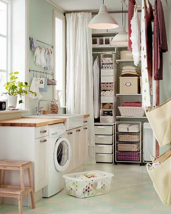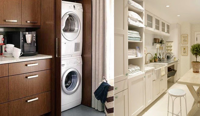 En los decotips hoy quiero hablaros de la zona de lavar o lavandería en casa que suele ser, en cuanto a decoración se refiere, a la que se le presta menos atención. En la mayor parte de las casas en nuestro país, lavamos la ropa en casa por el clima cálido y con pocas lluvias. De forma tradicional este es el lugar destinado a la lavadora, la secadora o el tendedero, es decir, a las tareas propias de “hacer la colada”. A pesar de que en las viviendas actuales no contamos con demasiados metros para ello, éste no deja de ser un espacio al que se le puede sacar mucho partido para tenerlo también bonito. Si tienes espacio aparte, suficiente y contiguo a la cocina, o vives en una vivienda en altura y puedes tenerlo en una planta esprofeso para ello, mucho  mejor; pero si no es el caso, una de las formas de no dejarlo aparte es integrando dicho espacio en el interior de la propia cocina.