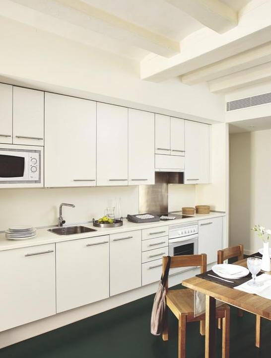 Situado en Barcelona este apartamento cuenta con elementos arquitectónicos y decorativos propios de un espacio tipo loft y con carácter industrial. En apenas 55 m² en un piso antiguo del centro de la ciudad, la empresa Muji se encarga de la reforma y decoración del mismo sacándole todo el partido y destacando su aspecto singular en cuanto a estructura y edificación. Por ello se rehabilitan ciertos elementos estructurales que merecían la pena como el techo, que era una estructura de bovedillas y vigas de madera, que se pintó de blanco para alejarlo visualmente y que la casa pareciera más amplia y con más altura. El descubrir toda la pared revestida de ladrillo, limpiandola y dejándola a la vista en la zona del estar fue todo un acierto que le confiere a todo el espacio una ambientación llena de estilo industrial y calidez. Así también se diferencia de la cocina y el comedor que forman un espacio abierto y compartido en ese espíritu de los lofts neoyorquinos.