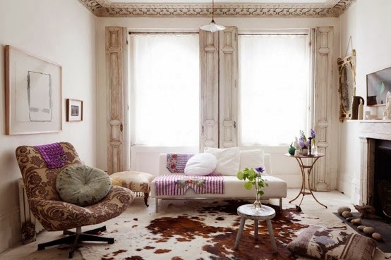 ¿Os imagináis una vivienda más encantadora en estilo shabby chic que ésta? Se encuentra en Londres y su propietaria Jo Willer, diseñadora londinense, muestra una increíble mezcla de detalles y buen gusto. Columnas de madera desgastadas, espejo vintage y una piel de vaca en el suelo armonizan, mientras que las grandes ventanas dejan entrar la luz. Una vivienda que mantiene las carpinterías originales, las molduras de los techos y los solado y lo combina con una decoración ecléctica de brocante. Un vestíbulo que revela contrastes interesantes que vienen dados por las molduras en el techo, la luz colgante que se asienta en el centro, la consola de roble a lo largo de la pared o el reloj de estilo Gustaviano.