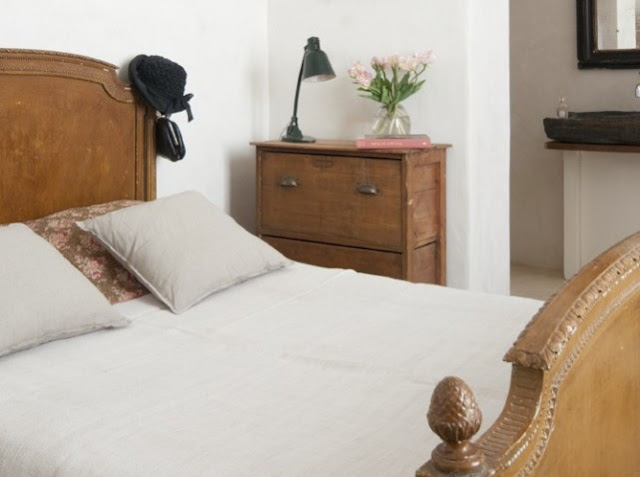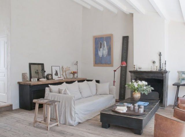 La luz entra en abundancia, inundando el espacio que invita a salir al exterior. En este mundo limpio y sencillo, Françoise ha encontrado un lugar para algunas de sus piezas favoritas que encuentra en China en las ventas de bazar. Su pátina auténtica , junto con las materias primas ( madera, ladrillos, lino, cáñamo ) crean un perfil minimalista en toda la decoración.