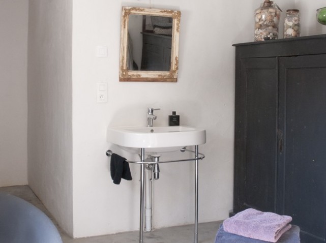 La luz entra en abundancia, inundando el espacio que invita a salir al exterior. En este mundo limpio y sencillo, Françoise ha encontrado un lugar para algunas de sus piezas favoritas que encuentra en China en las ventas de bazar. Su pátina auténtica , junto con las materias primas ( madera, ladrillos, lino, cáñamo ) crean un perfil minimalista en toda la decoración.