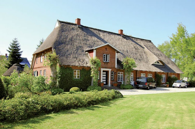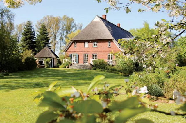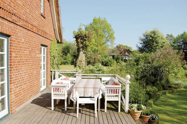 Una propiedad a la que se accede por un gran jardín y cenador, rodeado de césped y árboles, que envuelven un espacio antes señorial al norte de Niemec. Toda una cobertura verde que da la bienvenida a un interior en contraste absoluto con su fachada y exterior: ladrillo y jardín de plantas en verde, frente al blanco y beige de un interior que nos transporta al siglo pasado.