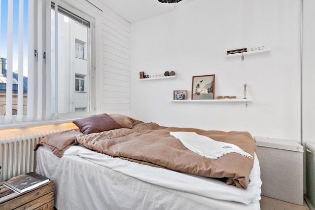 Enamorada de la estación de las hojas bonitas por antonomasia, el otoño nos trae espacios e interiorismos llenos de calidez. El apartamento de 39 m² está sito en Estocolmo y destaca por sus paredes de ladrillo y los pilares de hormigón de gran formato, lo que le confiere a todo el espacio un aspecto industrial a modo de espacio ‘open space’ donde todas las estancias están abiertas y comunicadas entre sí. Aunque el número de metros es reducidos podemos decir que no le falta absolutamente nada. Cuero, madera y textiles acogedores, envuelve todo el espacio dándole un toque otoñal perfecto para los días de frío y lluvia.