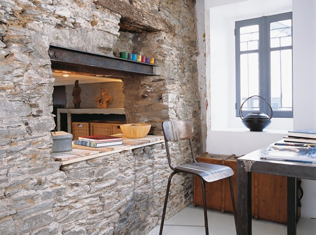 18/03/2012DEFINITIVAMENTE…esos son los lugares eu más me gusta, piedra y el toque industrial, y si encima añades negro la cosa se perfecciona sensiblemente!:D
