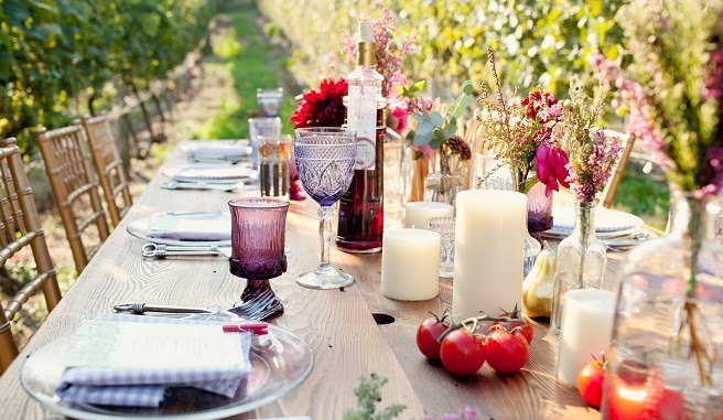 La paleta más utilizadas es la de los colores neutros, y los más vivos e intensos, prescindiendo, de los oscuros que restan luz y protagonismo a las mesas. Los tonos suaves son perfectos para estilos más delicados y naturales, mientras que los fuertes transmiten ambientes originales y atrevidos. El color lo podemos tratar y combinar en todos los complementos de mesa, buscando siempre una armonía, independientemente del estilo. Los complementos perfectos son las conchas, las frutas, las hierbas, velas, flores, etc.