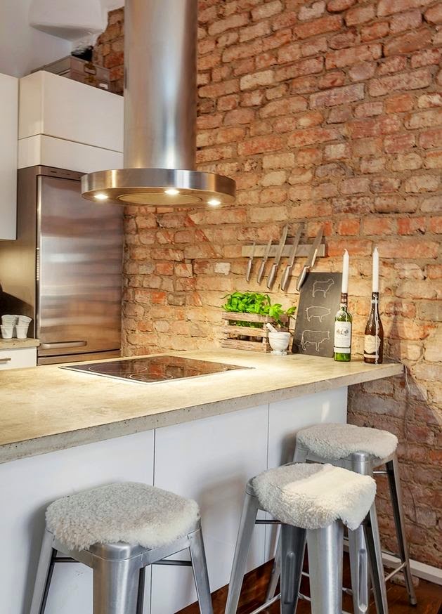 [Interior] Pequeño apartamento con paredes de ladrillo