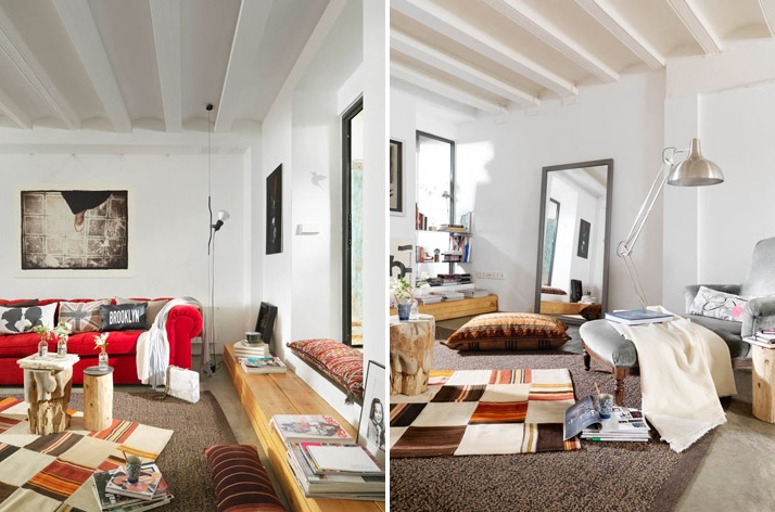 El espacio público de este loft es completamente abierto y se unen las piezas de salón, comedor y cocina, donde el suelo de microcemento y las estructuras metálicas contrastan con el sabor bohemio de las alfombras y pufs lleno de color y estampados étnicos. Frescos y alegres con mucho detalles que muestran un estilo desenfadado y acogedor. Una auténtica vivienda que cuenta con una terraza ajardinada perfecta para disfrutar el verano.