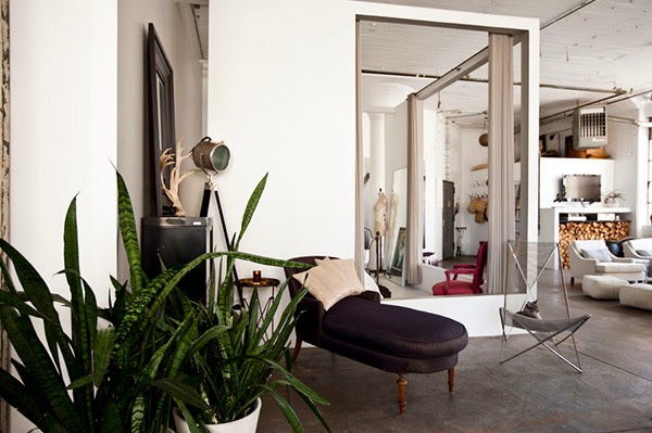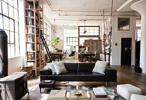 Este loft industrial ecléctico es la casa de la diseñadora y artista Alina Preciado y sus dos gatos, situado en un edificio industrial de 1800 en el barrio de Fort Greene de Brooklyn, Nueva York. El loft de 185 m2 con un dormitorio y un baño, mezclan piezas y mobiliario nuevo y usado recogido de sus viajes a lugares como Japón, España, India y el Medio Oriente, con un resultado de miscelánea perfecta. El loft era originalmente un taller de carpintería, con lo cual, todos los desperfectos, desconchones y arañazos en el suelo, se han conservado para darle un carácter de historia y estilo vintage. El loft cuenta una circulación increíble, con un plan de piso abierto y aireado, grandes ventanales y techos altos que mantiene el espacio bien iluminado. Un enorme salón presidido por un sofá de cuero vintage de la década de 1960, la escalera apoyada a modo de almacén, la gran estufa de leña con una chimenea de doble aislamiento, confieren al espacio el carácter industrial.