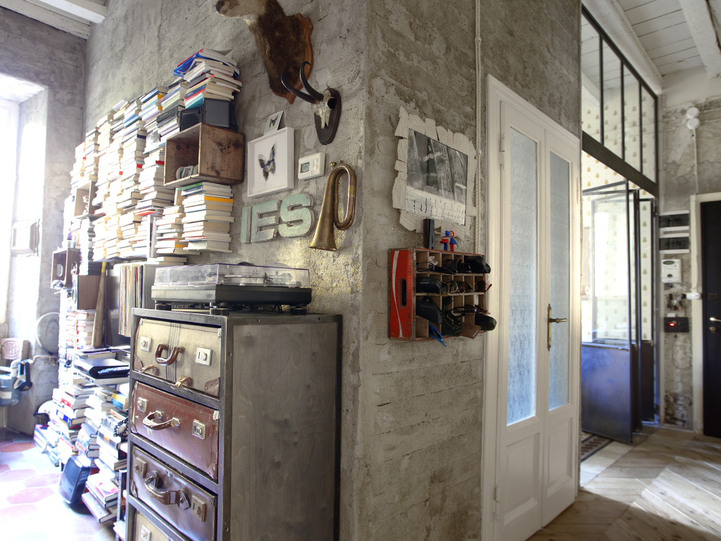 Una joven pareja de acumuladores de tesoros vintage, han creado un úncio espacio de vida y trabajo en el corazón de la ciudad de Milán, al más puro estilo loft industrial: The Chic Fish House & Studio. Renovar este apartamento fue un reto para la pareja que lo compró. El resultado sólo podía partir de la recuperación y recolección de objetos vintage, piezas de la que no se separan durante años y que les acompañan de casa en casa. Muchos materiales de reciclaje como la madera de los tablones de andamio, se utiliza en los suelos, el vitral provenía de una antigua fábrica de Fiat de Turín… Todo ha sido elegido con gran cuidado, nada se ha dejado al azar, creando una armonía en estilo industrial vintage de 10, con cierto aspecto decadente. ¡Me encanta!
