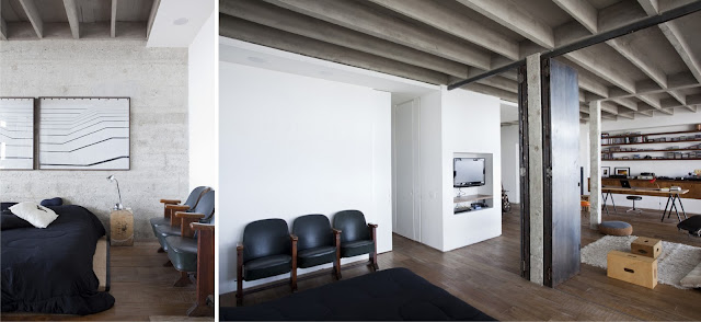 Sus arquitectos/diseñadores son Felipe Hess y Renata Pedrosa y adoptan soluciones modernas para un espacio de corte industrial. A pesar de la apertura de espacios, no se ha perdido la parte de privacidad de las zonas de noche, y se ha solucionado con la partición plegable metálica y un bloque central como separación íntima del área social.