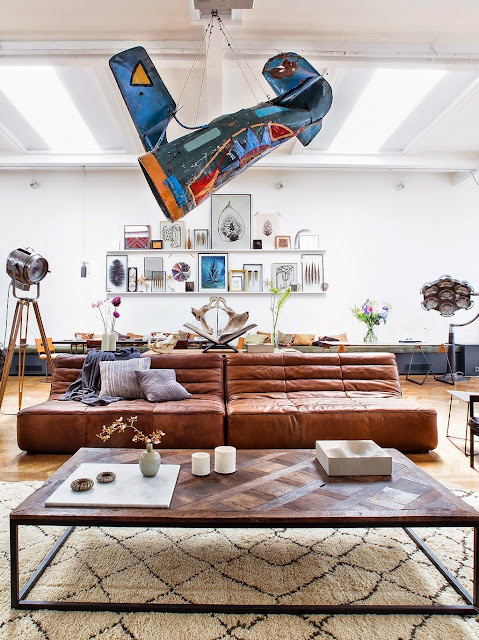 En un único espacio y mucha luz, las paredes y divisiones se suprimen y desaparecen, y de un sólo vistazo encontramos todo aquello imprescindible en una vivienda. Un concepto muy neoyorquino que arrasa en todas las ciudades más cosmopolitas del mundo. En The Loft todo se vendía y estuvo abierto en la ciudad holandesa en julio y agosto. Los visitantes pudieron contemplar una colección cuidadosamente elegida de diseño, arte, mobiliario y complementos culmina en una experiencia inspiradora del diseño de interiores más exclusivo y singular. Arte por los cuatro costados donde podemos observar piezas únicas como el magnífico avión antiguo colgado sobre la zona de estar. Arte contemporáneo, retratos, una lámpara de dentista, focos antiguos, esculturas orgánicas realizadas con piezas de madera, exquisitos tejidos procedentes de todos los rincones del mundo y la fabulosa bañera revestida de aluminio en mitad del espacio. ¡Maravilloso!
