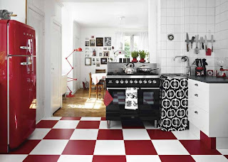 Ésta cocina en estilo retro y de ese color rojo intenso, me ha encantado, no le falta de nada, tiene su nevera, su fregadero, su cocina y un montón de accesorios para elegir.