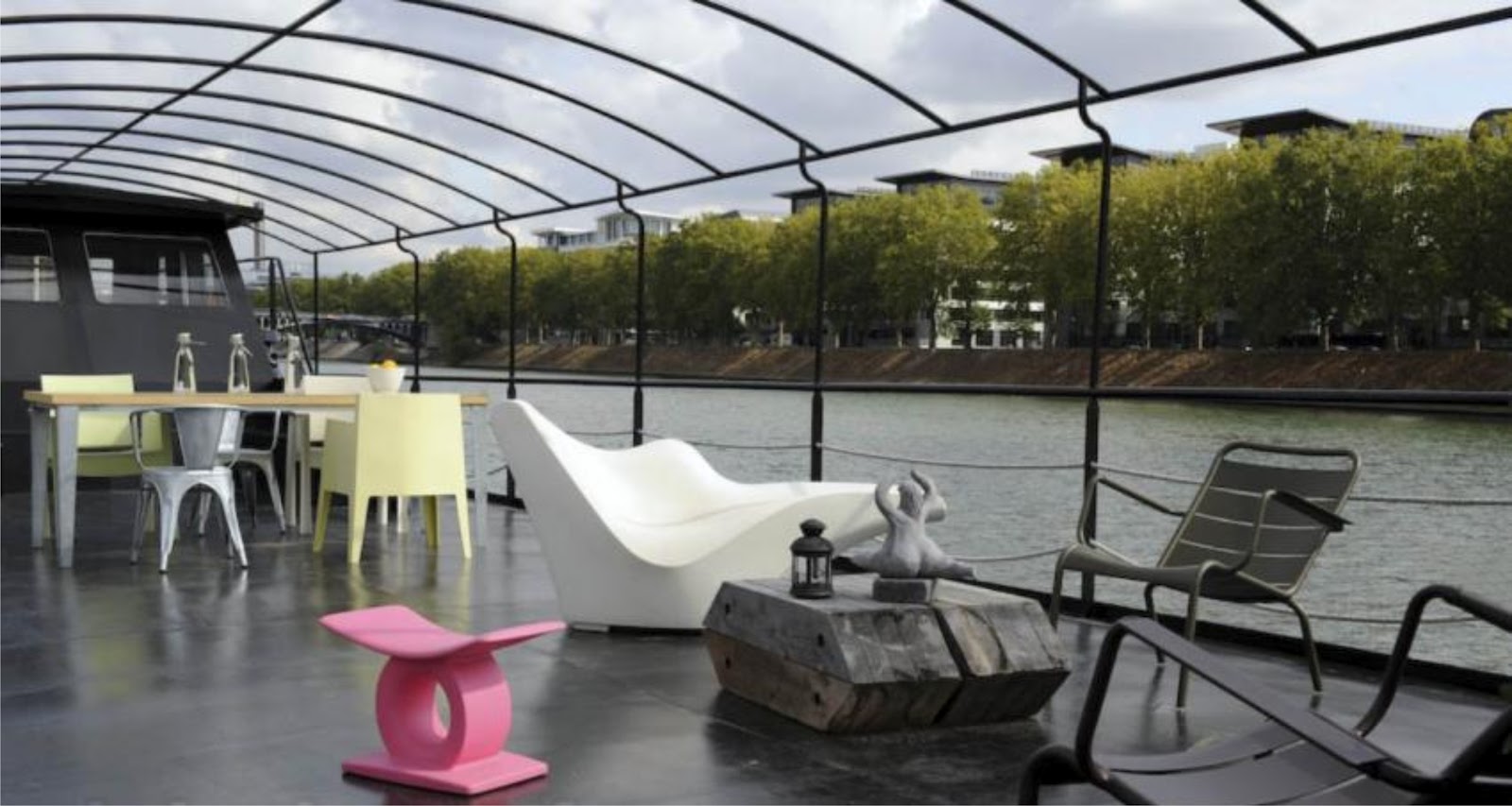 Un espacio que es una verdadera invitación al viaje, una forma de vivir fuera de lo normal  en pleno París! Una vivienda sorprendente y muy personal, llena de magia, anclada a orillas del Sena, Le Boudoir de Serendipity. Adiós a los atascos, a la contaminación y hola a los cisnes, a las gaviotas y al remar de la gente por el río.
