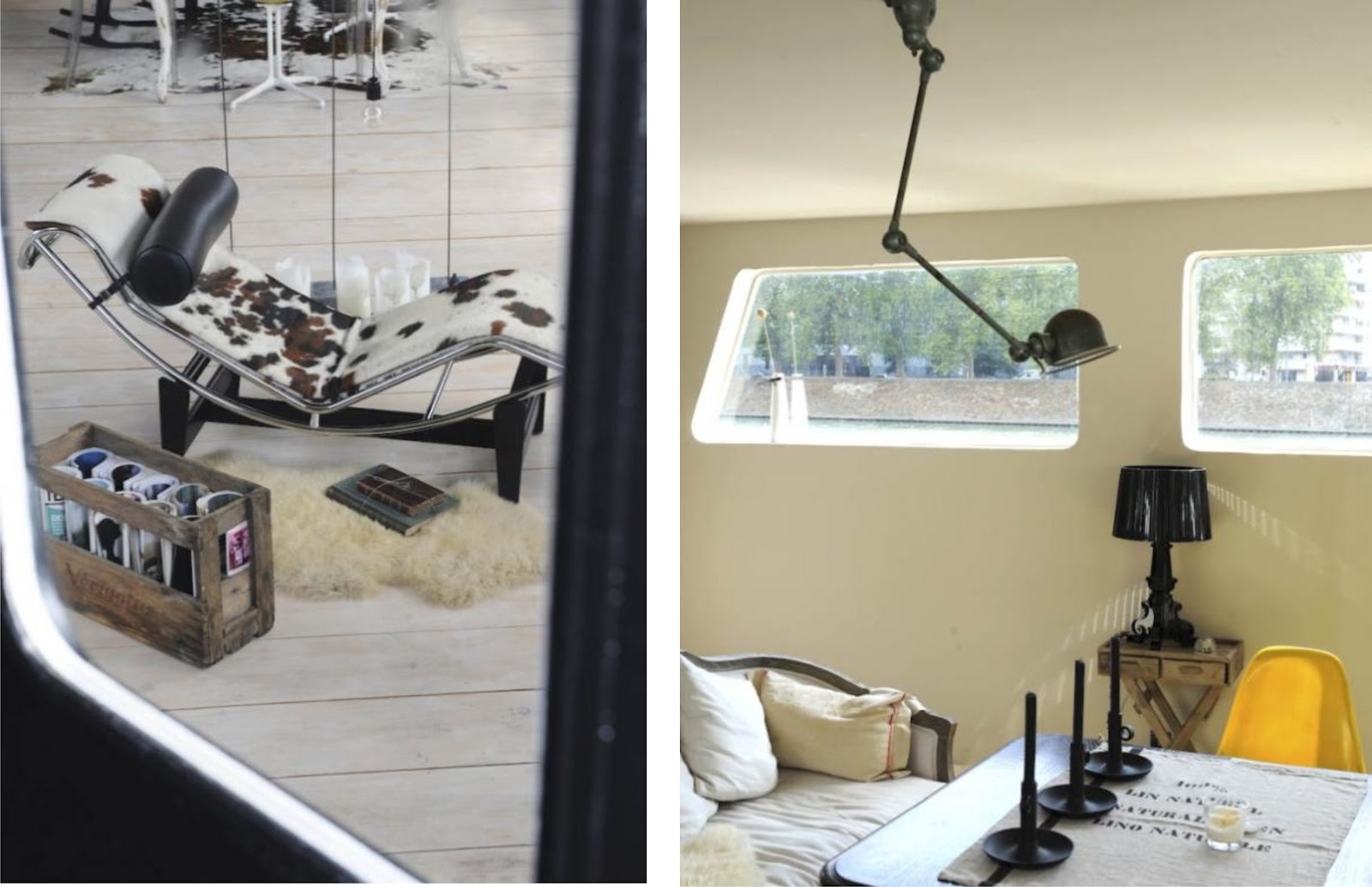 Mickael adora ponerse mucho perfume por las mañana, las rebanadas de pan fresco con mantequilla que Marie le prepara y odia todo lo que no engorda ! y a pesar de ello son la pareja perfecta. Y juntos se enamoraron de esta embarcación y quisieron convertirla en su hogar. Sólo unos pocos meses de trabajo y la renovación completa está lista; convertida en una casa-barco llena de piezas de autor y vintage, que invitan a subir a bordo.