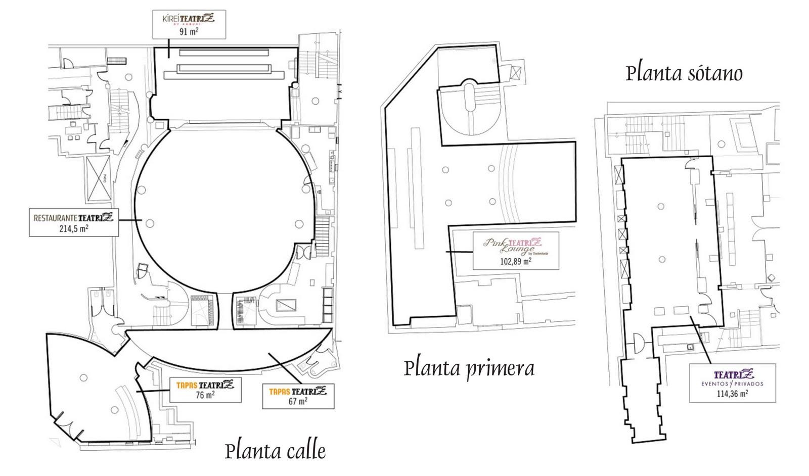 Para el nuevo diseño se ha contado con Bruno Borrione, colaborador de Starck y junto a quien ya trabajó en la creación del Teatriz hace 20 años. El espacio se ha concebido en 4 espacios distintos: Tapas Teatriz, Restaurante Teatriz, Kirei y Pink Lounge, siendo los dos últimos una alianza con los restaurantes Kabuki y Sudestada.