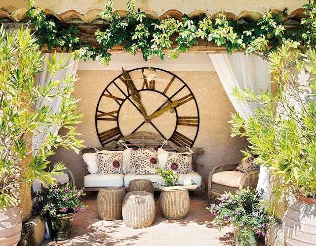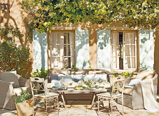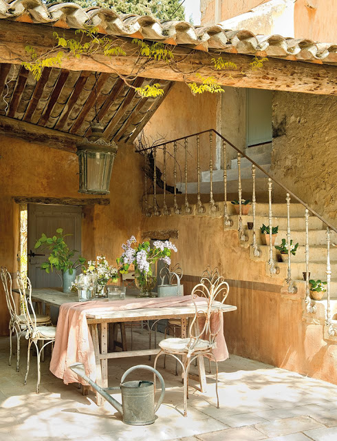 ¿Pensando en vacaciones? Pues no os podéis perder esta joya rústica en el corazón de la Provenza francesa. Un precioso edificio en piedra al exterior con todo el encanto cálido en el interior. Lo que antiguamente era una granja de Luberon, se convierte en una especie de retiro de labranza y descanso para una pareja de ejecutivos. Rodeado de viñedos y olivos, su exterior conquista por la belleza de su entorno y sus vistas inmejorables. A modo de patios íntimos con fuentes y sillas de parques parisinos, sus dueños se envuelven en  fragantes olores a rosas antiguas, jazmín, iris e higueras, que prolongan a los  interiores. Se intentó decorar la casa para que reflejara la luminosidad y las  vistas con un salón en tonos crema y cojines verdes (prolongación del viñedo). Es un conjunto sereno que invita a la charla o a la reflexión, según el  momento. Y la combinación de muebles provenzales y elegantes de aire  parisino es perfecta.