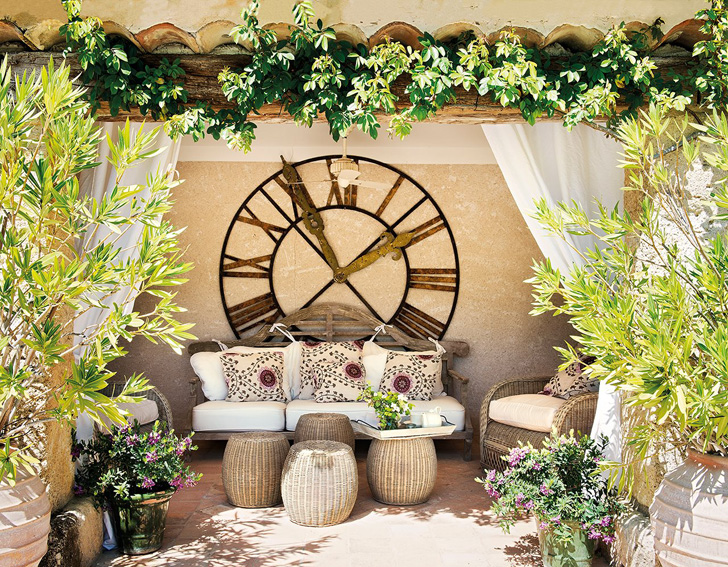 ¿Pensando en vacaciones? Pues no os podéis perder esta joya rústica en el corazón de la Provenza francesa. Un precioso edificio en piedra al exterior con todo el encanto cálido en el interior. Lo que antiguamente era una granja de Luberon, se convierte en una especie de retiro de labranza y descanso para una pareja de ejecutivos. Rodeado de viñedos y olivos, su exterior conquista por la belleza de su entorno y sus vistas inmejorables. A modo de patios íntimos con fuentes y sillas de parques parisinos, sus dueños se envuelven en  fragantes olores a rosas antiguas, jazmín, iris e higueras, que prolongan a los  interiores. Se intentó decorar la casa para que reflejara la luminosidad y las  vistas con un salón en tonos crema y cojines verdes (prolongación del viñedo). Es un conjunto sereno que invita a la charla o a la reflexión, según el  momento. Y la combinación de muebles provenzales y elegantes de aire  parisino es perfecta.