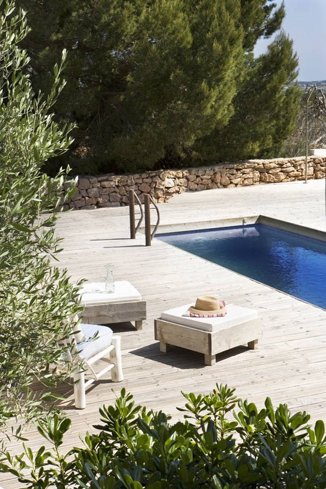 Mi elección de hoy se trata de un espacio exterior con todo el encanto y sabor de una terraza de verano en dos niveles: la zona de piscina y el área de cenador. Una terraza de una vivienda situada en la isla de Formentera, que se encuentra integrada perfectamente en el paisaje, utilizando materiales naturales como la madera, cemento, piedra, cañizo y las paredes revestidas a la cal, un clásico de las viviendas típicas de las Islas Baleares. Un exterior proyectado para ser disfrutado por sus espacios amplios, frescos y luminosos, y los porches y comedores de verano con vistas a la piscina y a toda la naturaleza que la rodea. Un perfecto lugar de descanso y tranquilidad… No me importaría pasar unas vacaciones aquí!