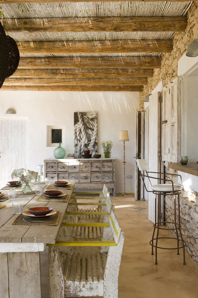 20/06/2013Nos encanta el estilo ibicenco, maderas lavadas, textiles blancos, algún toque de transparecencias en tonos azulados que recuerdas al mar, vegetación mediterránea… Preciosa!