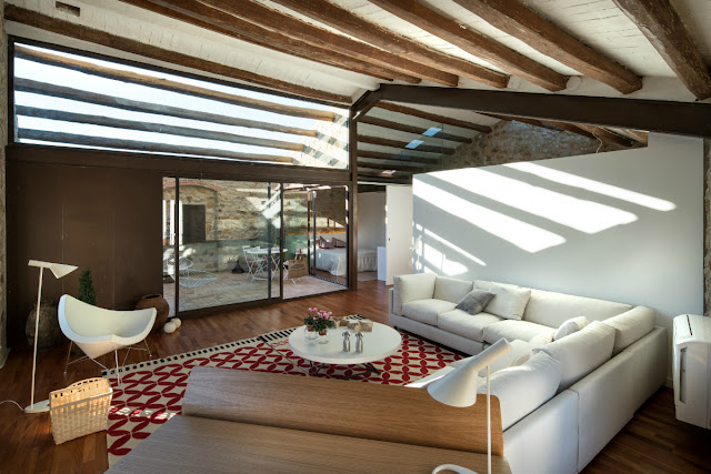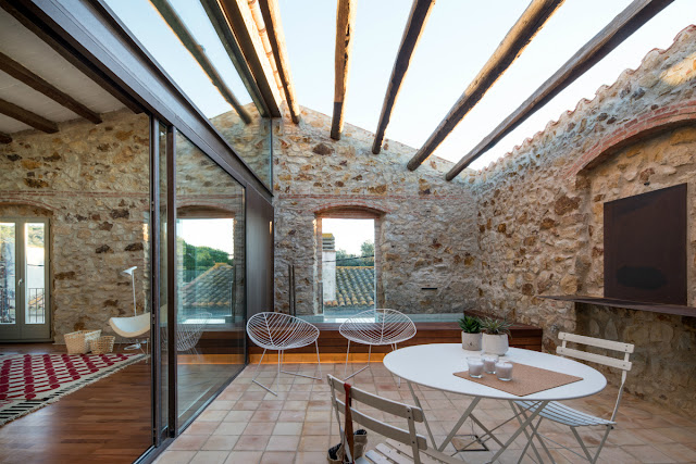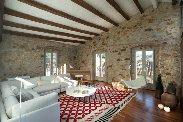 El otro día lo comentaba con una amiga y descubrir esta vivienda ha sido crucial. ¿No os pasado alguna vez querer escapar del mundanal ruido y del estrés de la ciudad?. Yo lo pienso casi a diario cada vez que cojo el coche por Madrid, o salgo a comprar… Dan ganas de dejarlo todo y escaparse a la tranquilidad de la vida sencilla. Pero al pensarlo friamente y ponerte a buscar la casa que encaje en mis perspectivas, nunca encuentro nada que me haga decidirme. Este casona de 1900 y antiguo granero situado en el Empordá, cubre todas ¡¡¡mis expectativas!!!. Un refugio perfecto, de estructura vista original de piedra y 206 m². La vivienda cuenta con 3 dormitorios, 3 baños, terraza y una piscina pequeña ¡ideal!. Para que la vivienda pudiese contar con un espacio exterior se creó una terraza vaciando la cubierta, pero manteniendo las vigas de madera y la fachada principal de la casa, de manera que no se alterara la geometría de la edificación desde la calle.